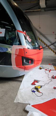 Afin de faire passer le message de la nécessité du port du masque dans les transports en commun à ses usagers, Transvilles a eu l’idée assez surprenante, mais humoristique, d’habiller un de ses trams d’un masque rouge.
