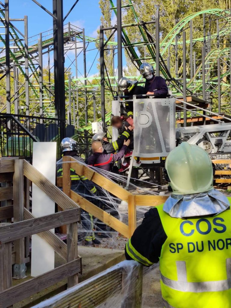 La sécurité étant enclenchée, elle ne pouvait donc pas repartir. Après reconnaissance, les sapeurs-pompiers ont procédé à l’évacuation des trois personnes, un adulte et deux enfants, à l’aide de l’échelle venue de Douchy les Mines. L’intervention d’un technicien a ensuite permis de débloquer les barres de sécurité ventrales. L’intervention s’est achevée sans aucun blessé et la petite famille a pu poursuivre sa journée.