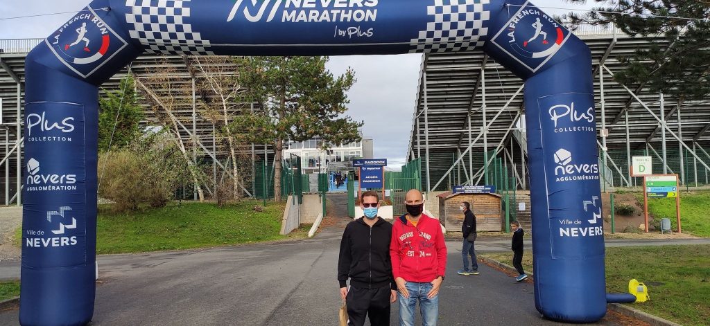 C’était la deuxième édition du Marathon de Nevers, qui se déroule normalement du circuit automobile de Magny-Cours à la ville de Nevers. Mais avec les restrictions sanitaires, les organisateurs n’ont pas eu le droit de faire courir sur la voie publique. Le marathon s’est donc déroulé entièrement sur le circuit, de nuit, une course automobile avait lieu sur le circuit tout le week-end.