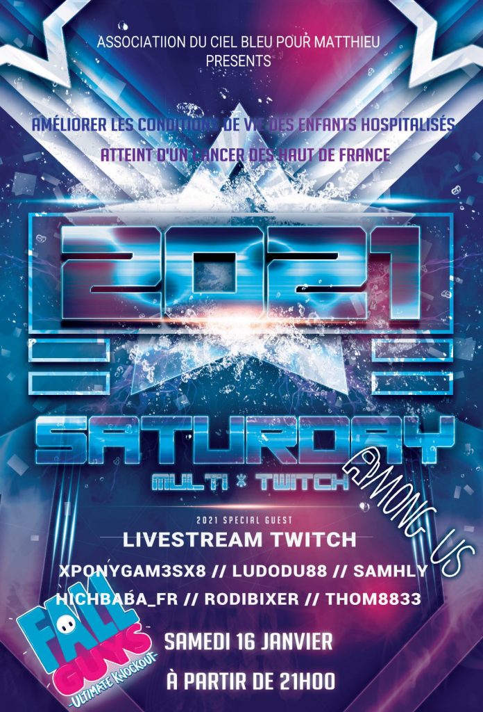 Samedi 16 janvier à partir de 21h00 sur TwitchMulti Gaming entre streameurs et gamers sur 3-4 jeux différents toute la soirée.
