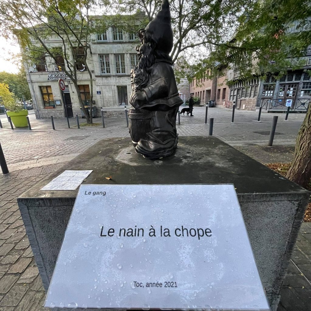 Depuis, le socle est vide, mais ce week-end un nain de jardin baptisé « le nain à la choppe, toc année 2021 » a fait son apparition, à la surprise générale.