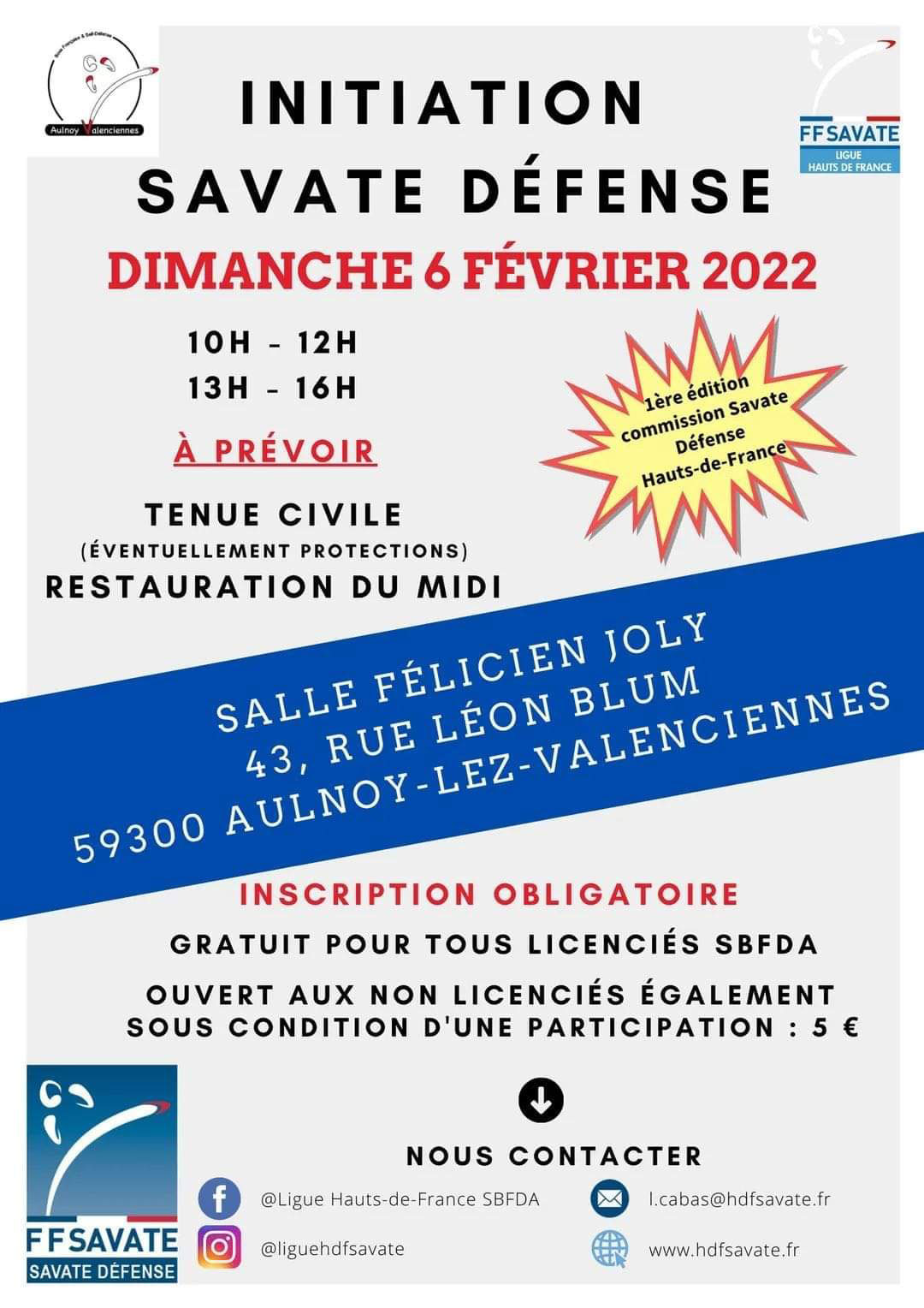 Le club Aulnoy-Valenciennes boxe francaise en partenariat avec la ligue de savate boxe française Hauts-de-France organise un stage d’initiation à la self-défense le dimanche 6 février 2022.