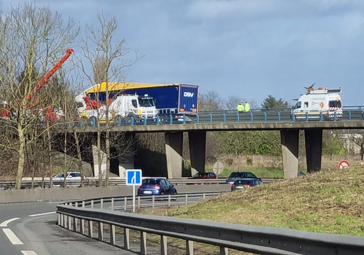 Trith-Saint-Léger – Un camion en mauvaise posture sur le pont de la D630