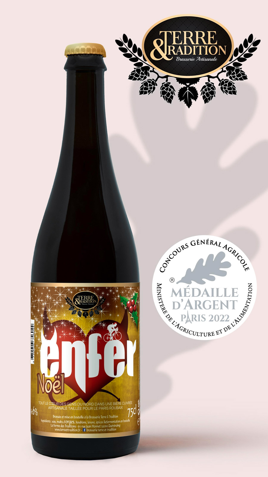 Après avoir obtenu en 2019, une Médaille d’Or et d’Argent au Concours Général Agricole de Paris pour les Bières Enfer du Nord Classique et Triplus, la Brasserie Terre & Tradition a été primée cette année pour sa Bière Enfer du Nord Cuivrée de Noël et a reçu une médaille… d’argent.