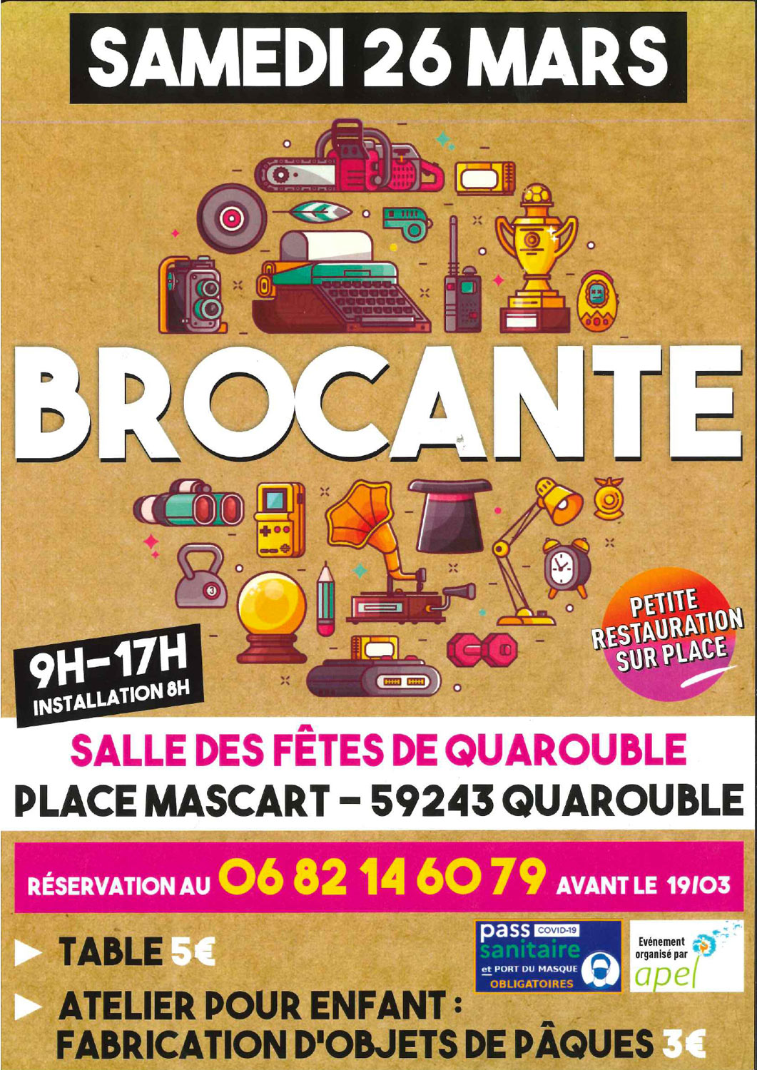 L’Association des Parents d’Elèves de l’école Notre Dame du Sacré Cœur de Quarouble organise une brocante et un atelier de fabrication d’objets de Pâques pour les enfants.