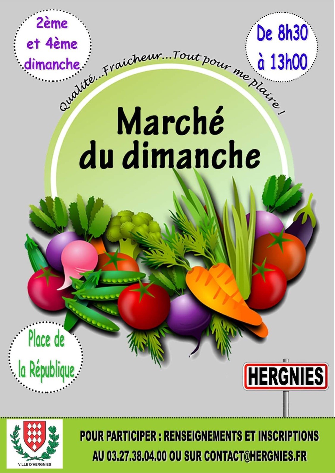 Pour répondre au souhait des Hergnisiens d’avoir un marché alimentaire et non alimentaire, la ville a décidé d’un marché bimensuel.