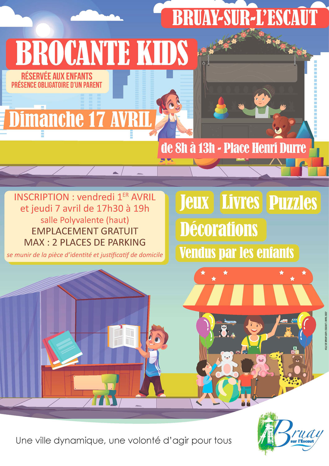 Dimanche 17 avril de 8h à 12h sur la place Henri Durre et parvis de l’école Brassens avec une brocante réservée aux enfants (bruaysiens en priorité).