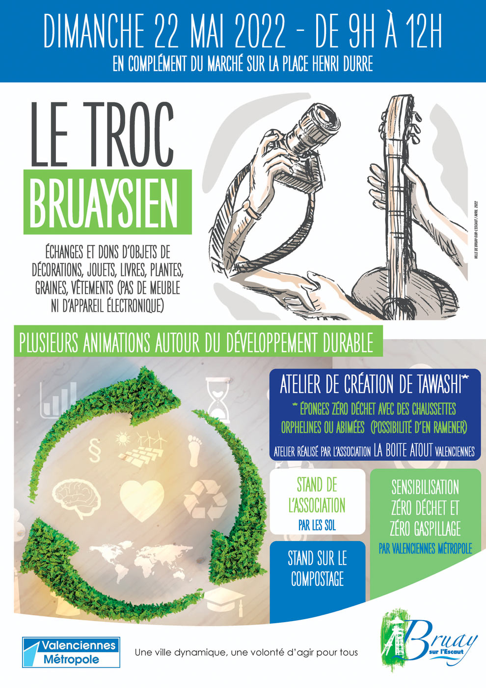 Le Troc Bruaysien, une place d’échanges et de dons d’objets de décorations, jouets, livres, plantes, graines, vêtements (attention pas de meuble ni d’appareil électronique).