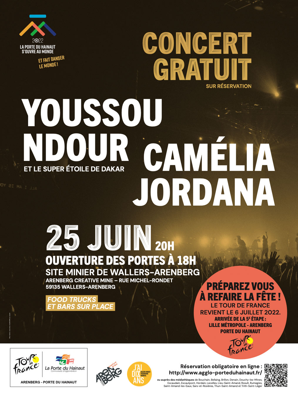 Youssou NDour et Camélia Jordana se partageront la scène installée pour l’occasion sur le site minier de Wallers-Arenberg pour un grand concert gratuit.