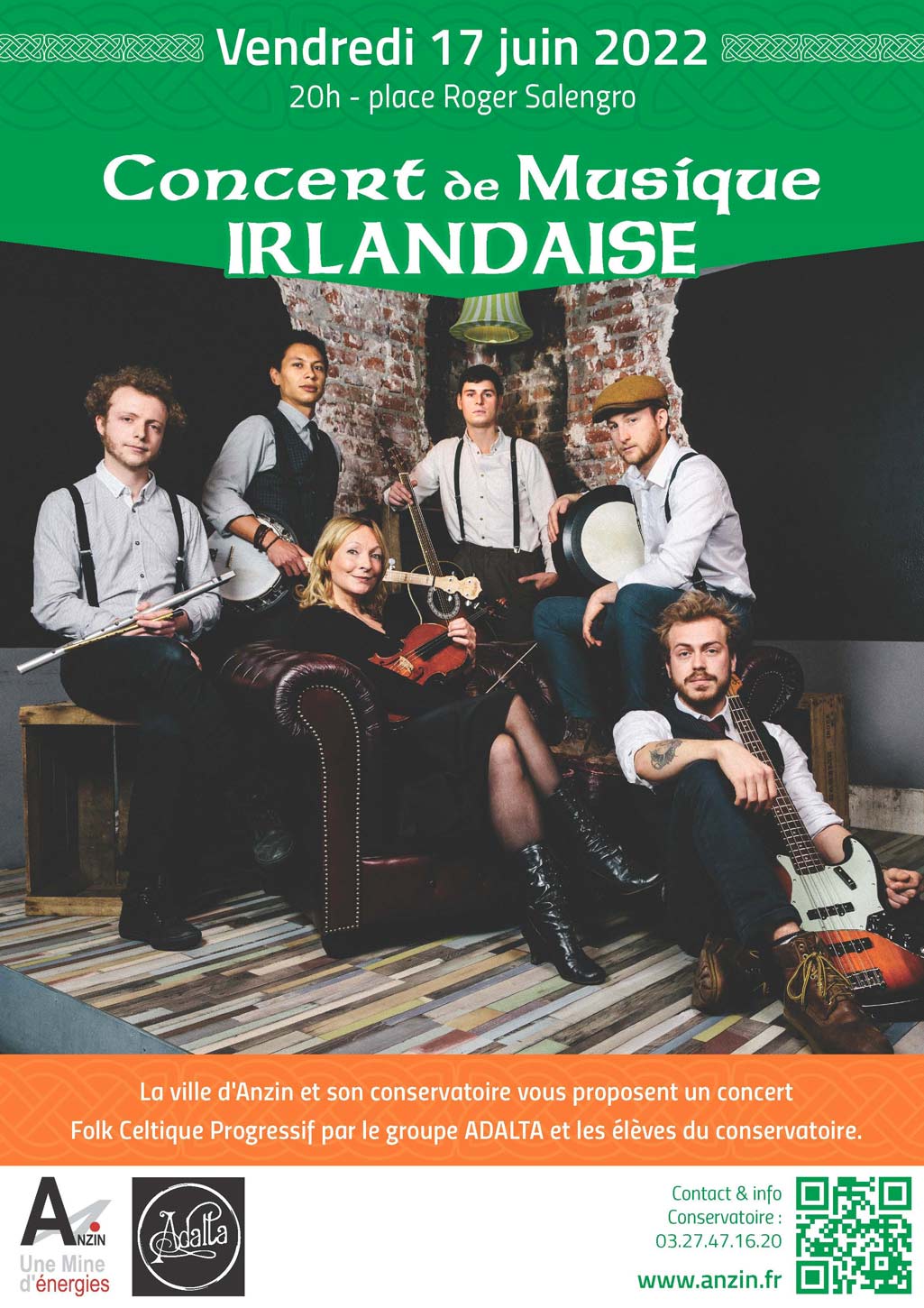 (concert Folk Celtique Progressif par le groupe Adalta et des élèves du conservatoire d’Anzin).