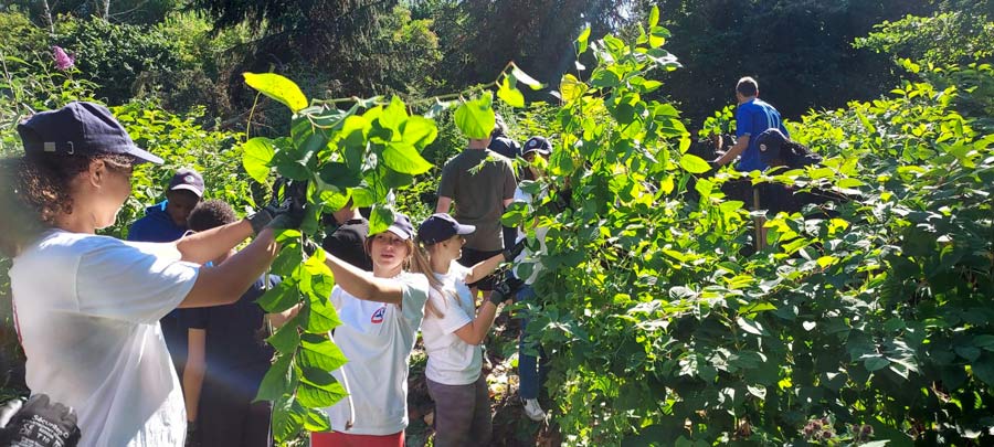 Engagée depuis 2019 dans le déploiement du SNU dans le Valenciennois, l’ENTE a proposé que les volontaires soient les acteurs d’une action en faveur de la biodiversité. En partenariat avec la ville de Valenciennes, les jeunes ont procédé à l’arrachage de la renouée du japon, une espèce exotique envahissante qui prolifère autour de l’étang du Vignoble, et qui menace les écosystèmes, les habitats naturels et les espèces locales.
