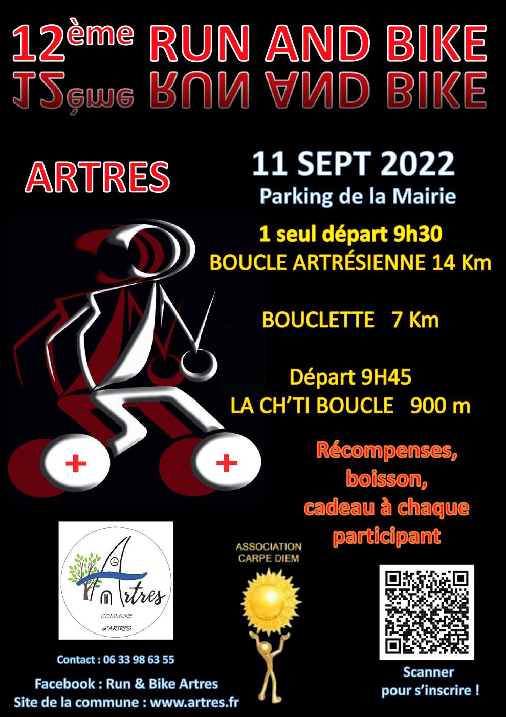 Après deux ans d’absence (pandémie), l’association Carpe Diem épaulée par la municipalité organise la 12ème édition du Run & Bike d’Artres le 11 septembre 2022.