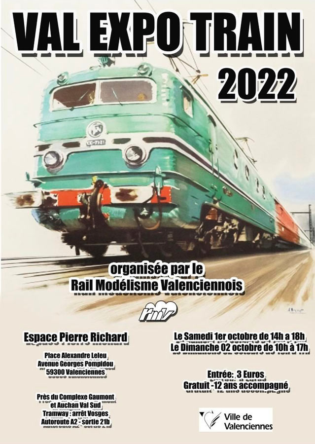 Exposition organisée par le Rail Modélisme Valenciennois. Entrée : 3 euros, gratuite pour les moins de 12 ans accompagnés.