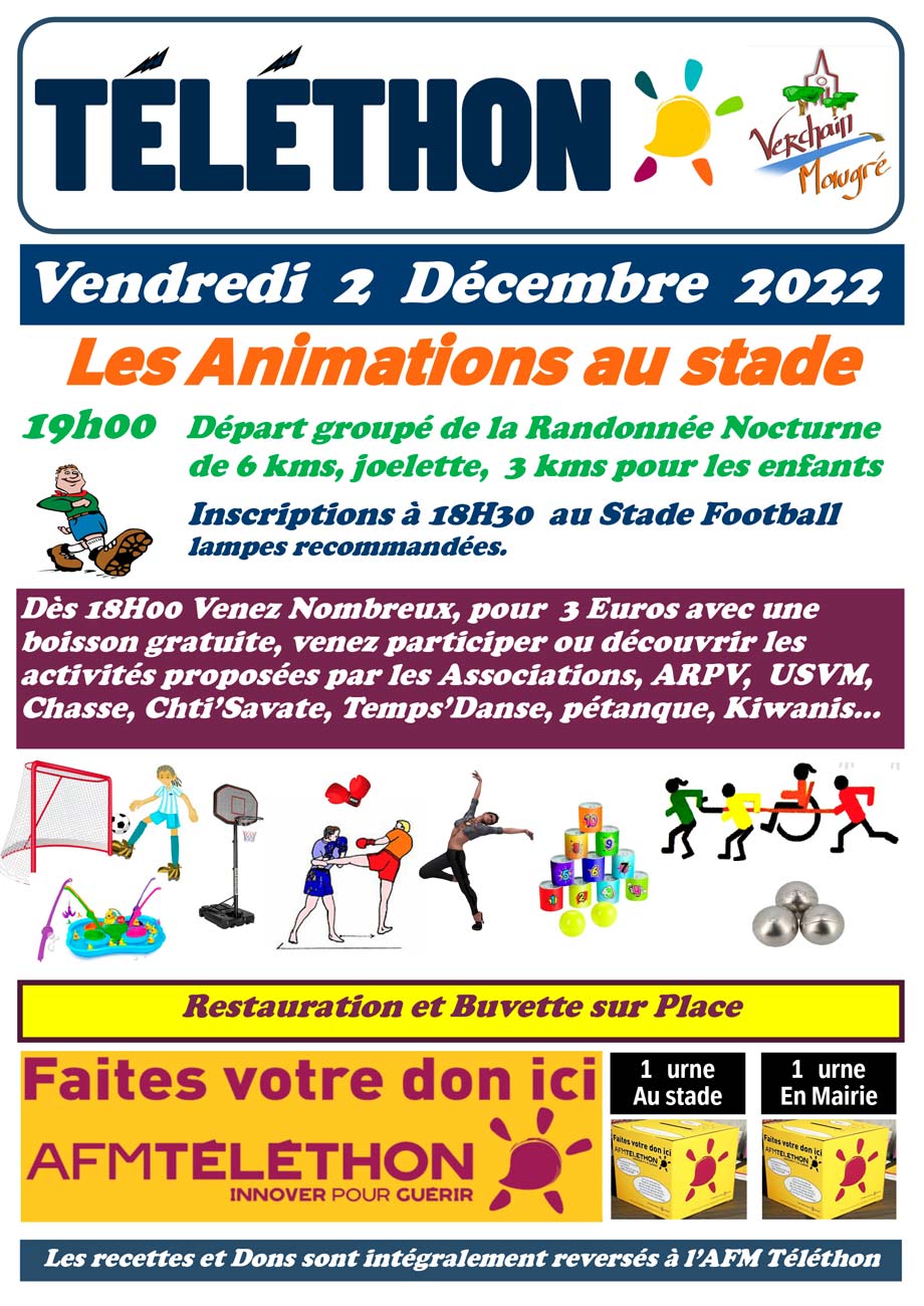La commune de Verchain-Maugré associée avec l’ensemble des associations organise une soirée le 2 décembre au profit du Téléthon.
