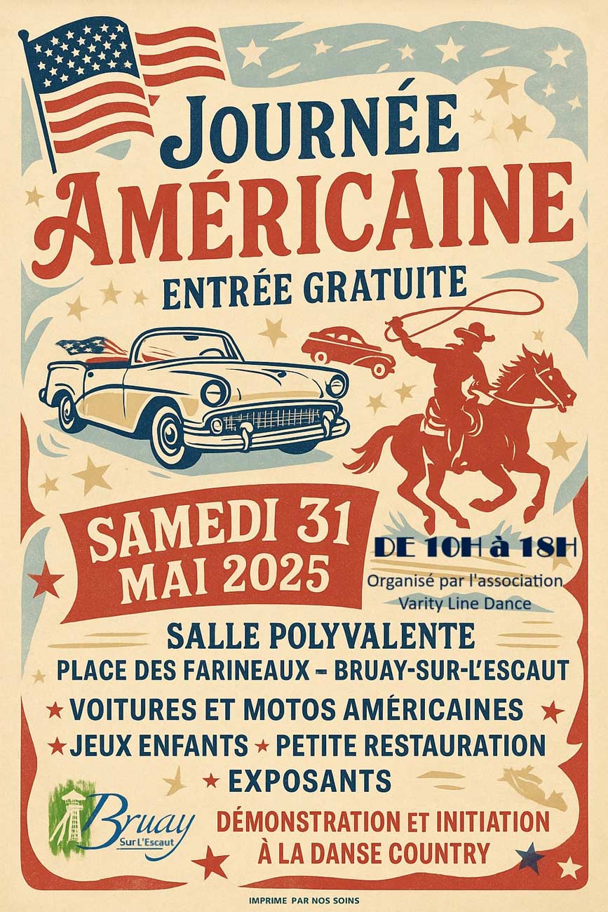 La ville de Bruay-sur-l’Escaut vivra au rythme de la culture américaine le samedi 31 mai 2025 à l’occasion de la Journée Américaine, un événement festif et gratuit organisé par l’association Varity Line Dance.