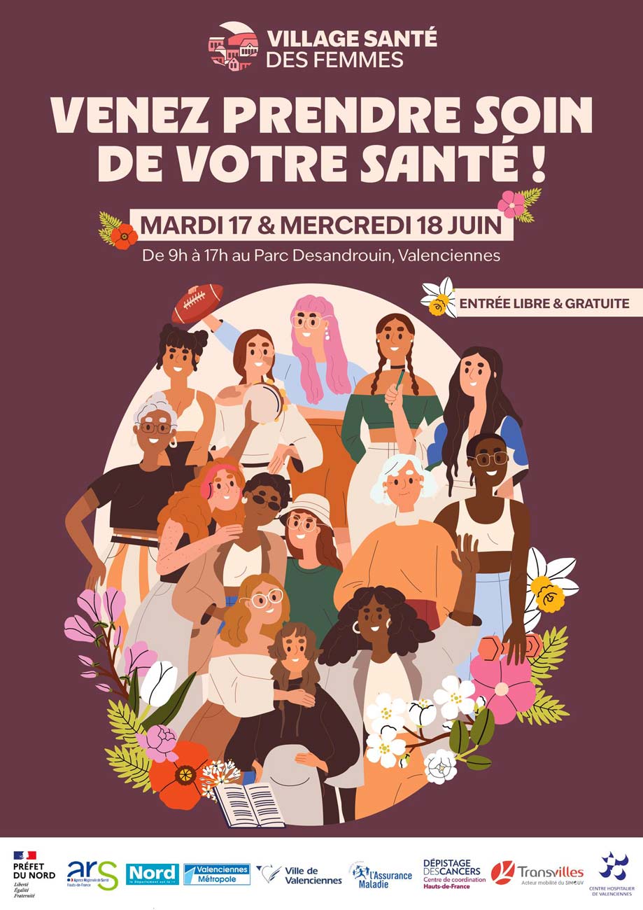 Le Centre Hospitalier de Valenciennes, Valenciennes Métropole, la Ville de Valenciennes et la sous-préfecture de Valenciennes sont heureux d’annoncer l’organisation d’un nouveau Village Santé des Femmes.