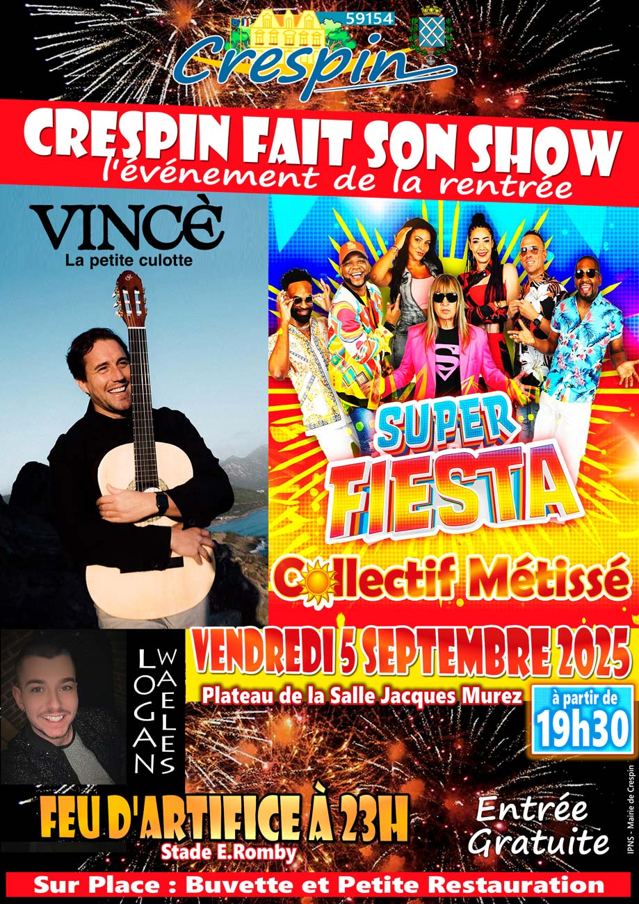 La ville de Crespin vous invite à célébrer la rentrée en beauté à l’occasion de son événement incontournable : « Crespin Fait son Show », qui se tiendra le vendredi 5 septembre 2025 à partir de 19h30 sur le plateau de la Salle Jacques Murez, derrière l’Hôtel de Ville.