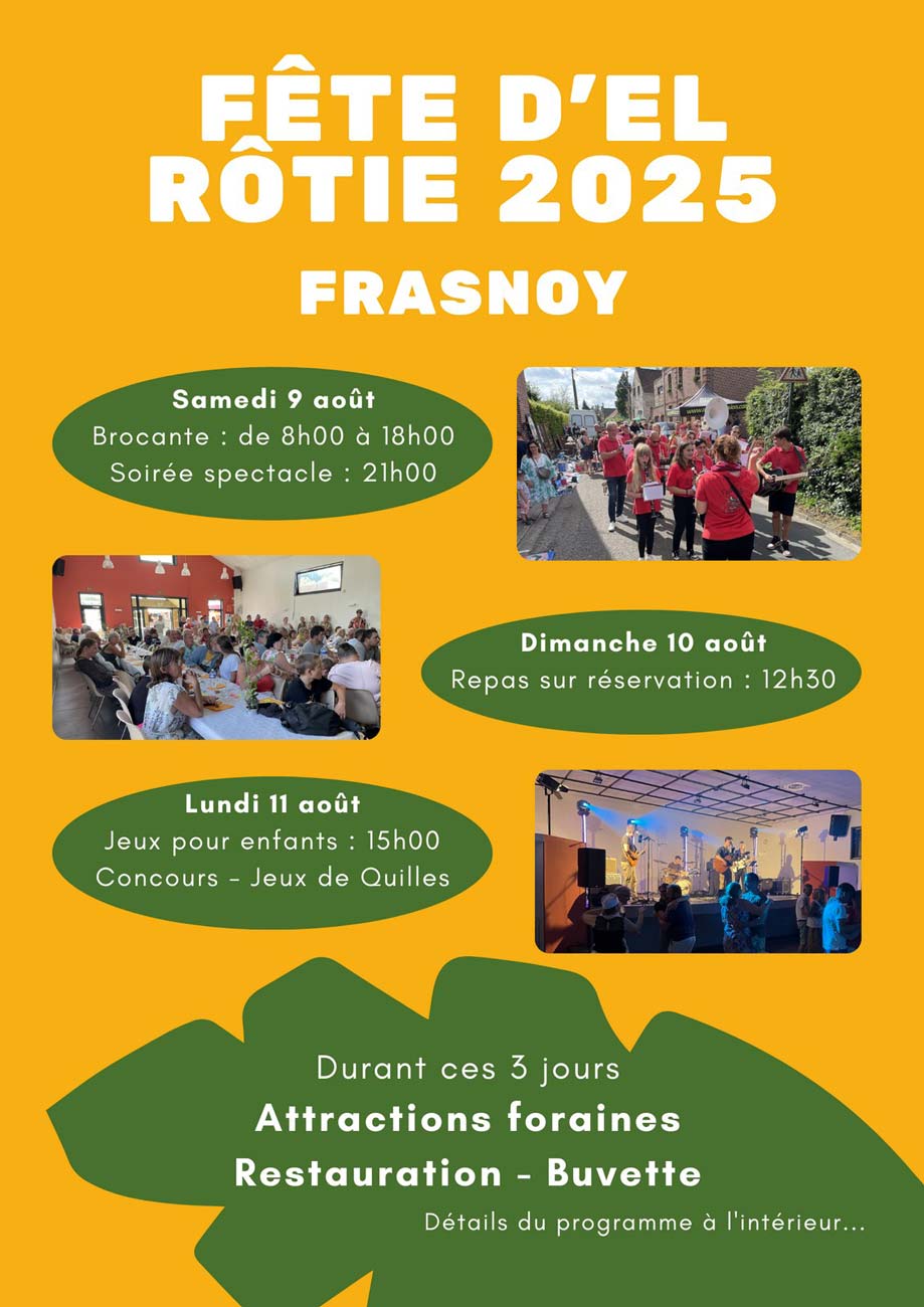 Frasnoy – Fête d’El Rôtie 2025 : trois jours de festivités à ne pas manquer, du 9 au 11 août