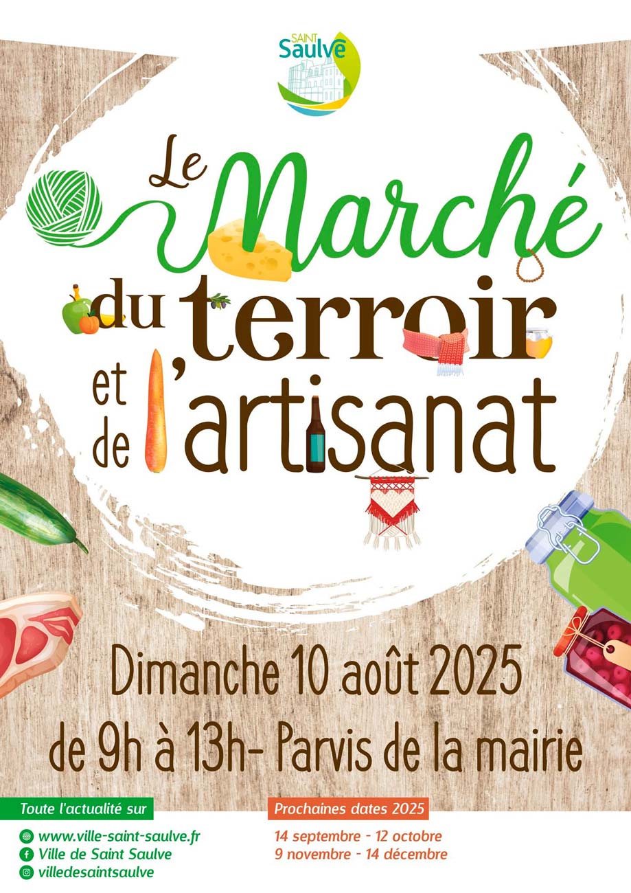 La ville de Saint-Saulve vous donne rendez-vous pour son incontournable Marché du Terroir et de l’Artisanat, ce dimanche 10 août 2025, de 9h à 13h, sur le parvis de la mairie. L’occasion idéale pour découvrir et savourer les produits locaux, échanger avec des producteurs passionnés et admirer le savoir-faire d’artisans de la région.