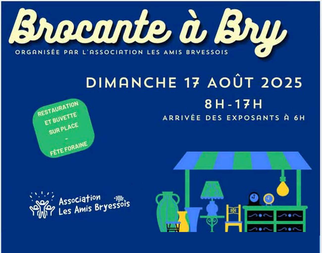 Le dimanche 17 août 2025, Bry vivra au rythme de la grande brocante organisée par l’Association Les Amis Bryessois.