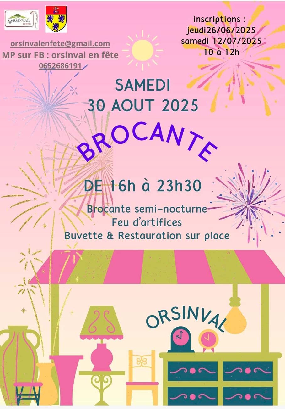 Orsinval s’animera le samedi 30 août 2025 avec une brocante semi-nocturne de 16h à 23h30.