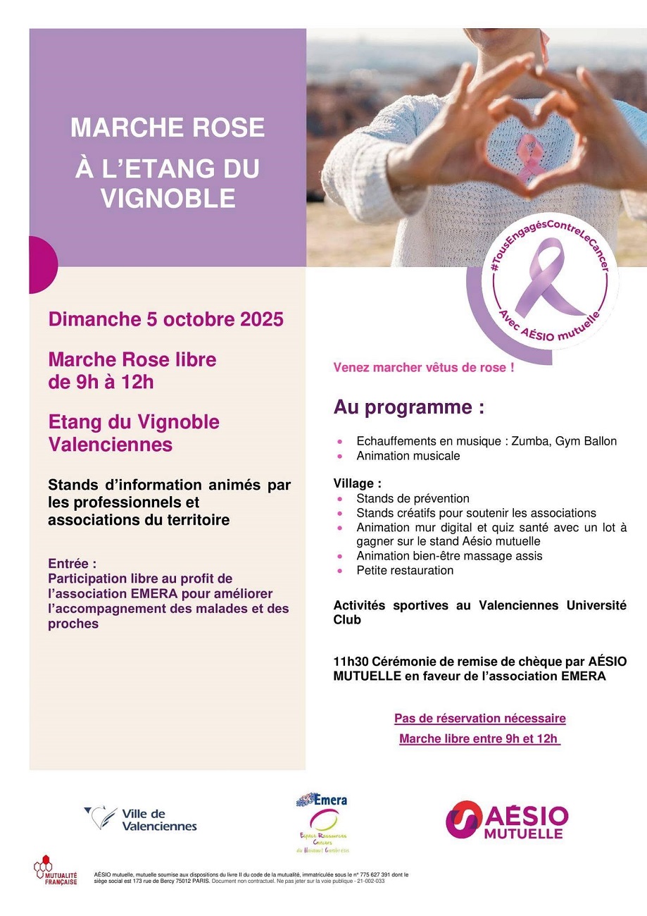 Le dimanche 5 octobre 2025, l’Étang du Vignoble de Valenciennes accueillera la Marche Rose, un événement organisé dans le cadre de la lutte contre le cancer. Cette marche se déroulera librement de 9 heures à 12 heures. Les participants sont invités à venir vêtus de rose, symbole d’Octobre Rose.