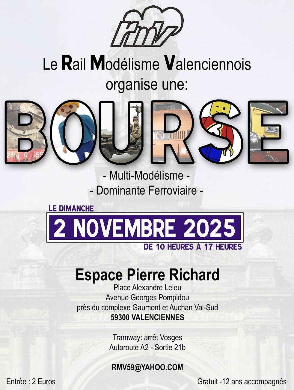 Le Rail Modélisme Valenciennois (RMV) organise sa bourse annuelle dédiée au modélisme ferroviaire et miniatures ce dimanche 2 novembre 2025.