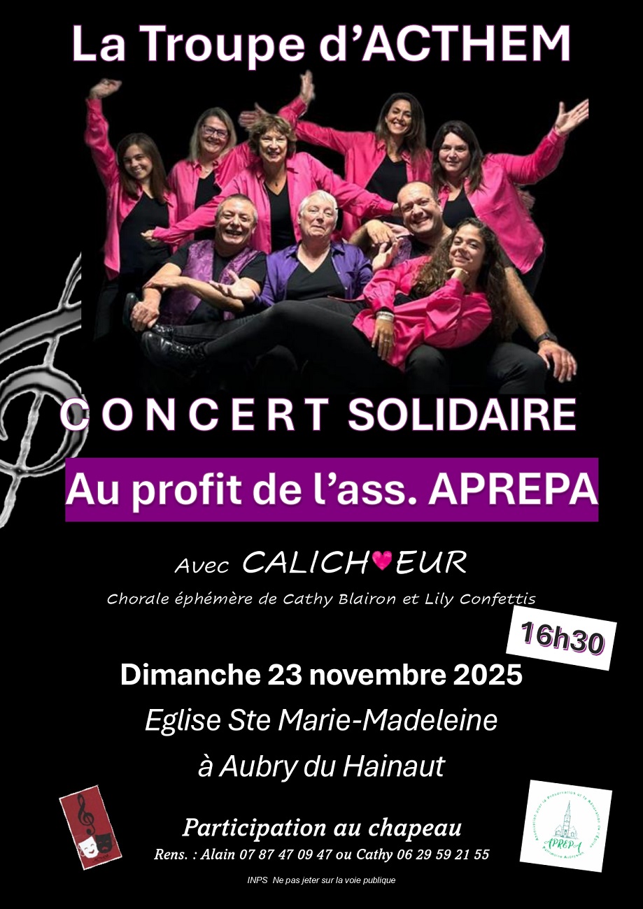 L’association Aprepa organise un événement musical en partenariat avec le groupe d’Acthem et Calichoeur, la chorale éphémère de Cathy Blairon et Lily Confettis.