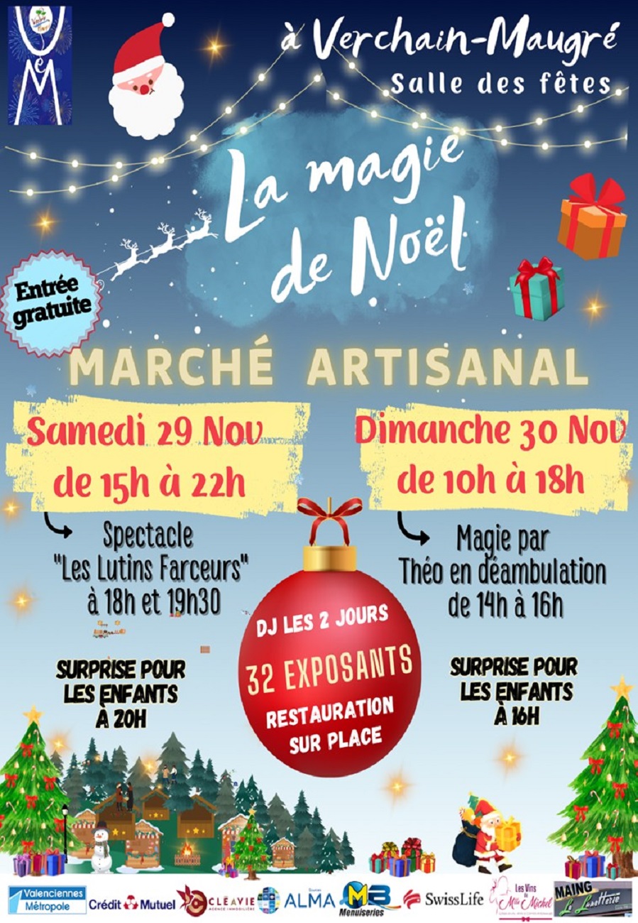 Verchain-Maugré – 32 exposants et spectacles gratuits au marché de Noël les 29 et 30 novembre
