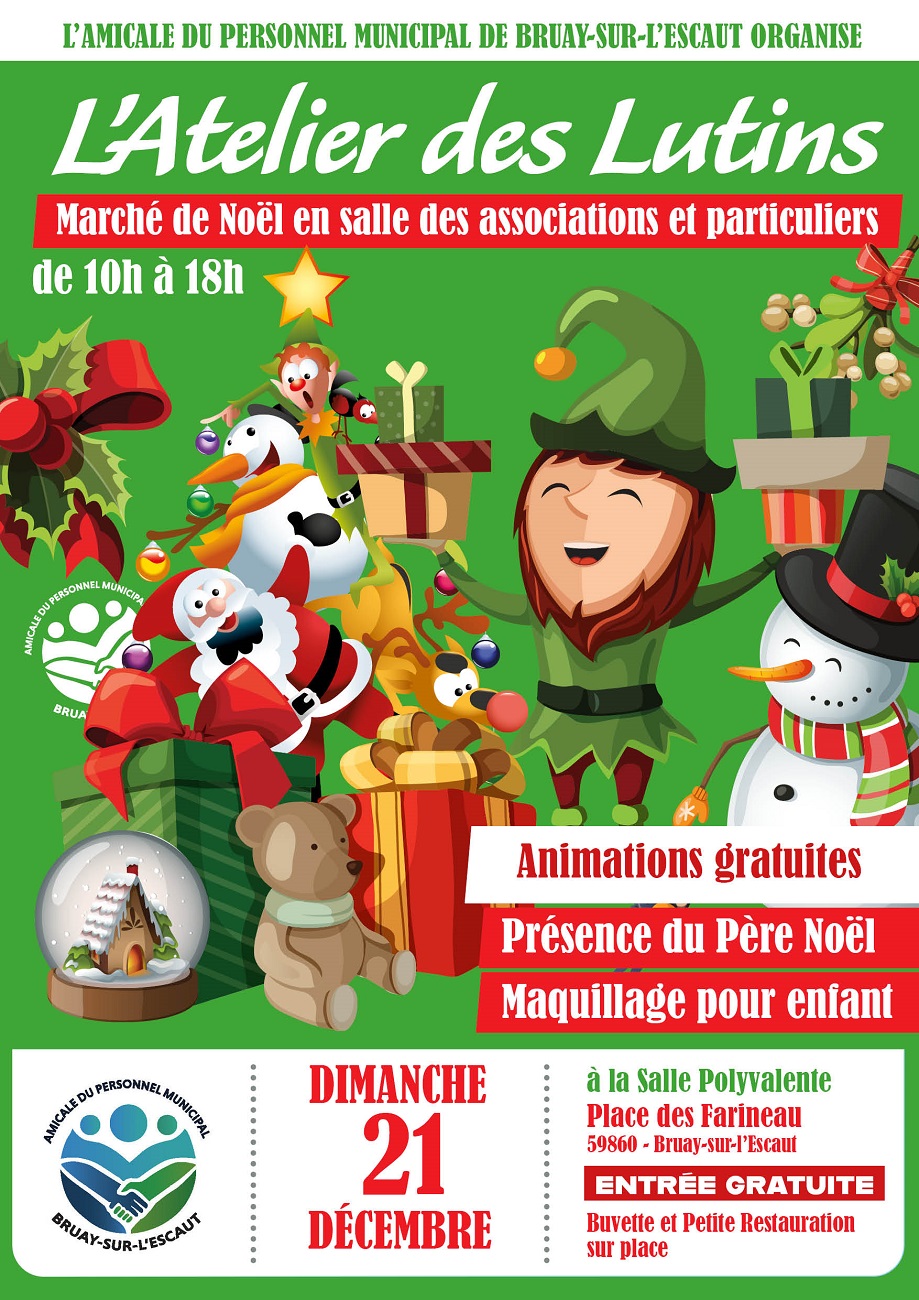 L’Amicale du Personnel Municipal de Bruay-sur-l’Escaut organise la première édition de l’Atelier des Lutins, son marché de Noël en salle, de particuliers et d’associations.