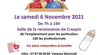 Ce samedi 6 novembre 2021 de 7h à 16h à la salle de la renaissance de Crespin (rue Desire Pelabon),…