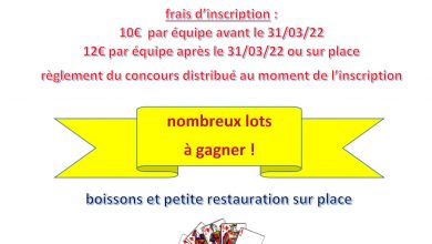 Le club de tennis de table de Famars organise son 7e concours de belote le samedi 2 avril 2022 à…